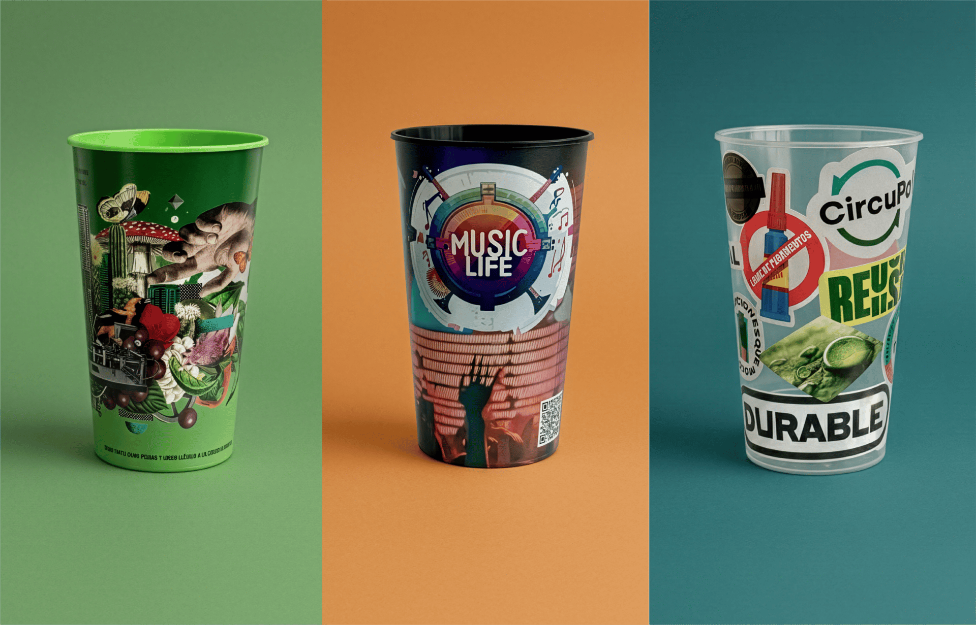Acabado Clear: Etiqueta transparente que permite ver el contenido del vaso a través del diseño impreso, generando efectos visuales atractivos y modernos. Es ideal para marcas que buscan destacar elementos gráficos de forma sutil y creativa, creando una experiencia visual única que interactúa con el producto en su interior.